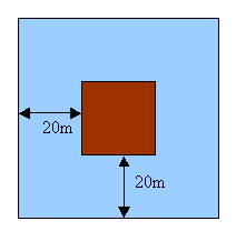 Temos um castelo quadrado no meio dum fosso quadrado.
